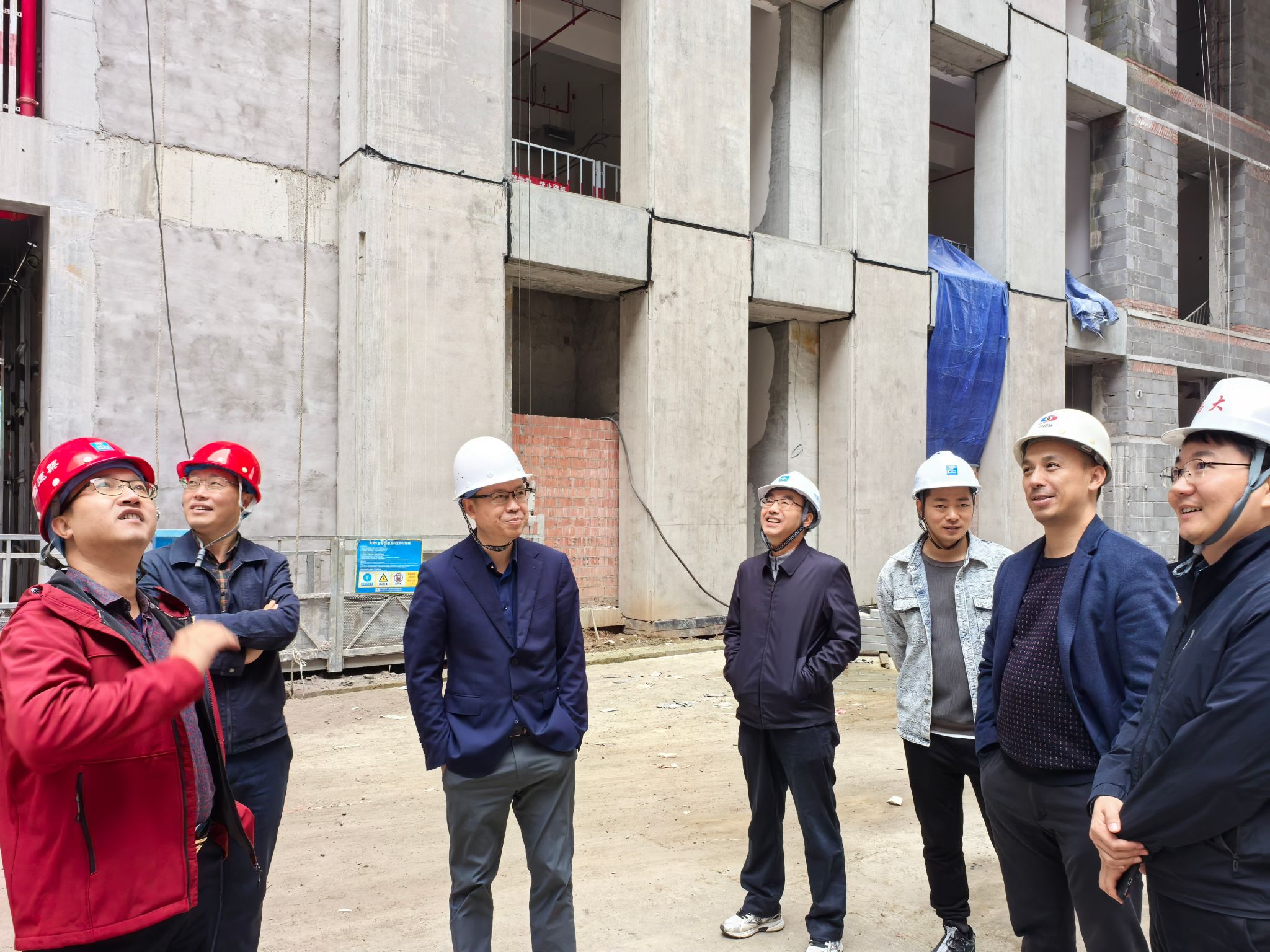 2025年11月12日,廖晓衡副校长带领国资后勤处、基建处前往生物学大楼施工现场指导报告厅、研讨室家具需求、内饰设计等工作