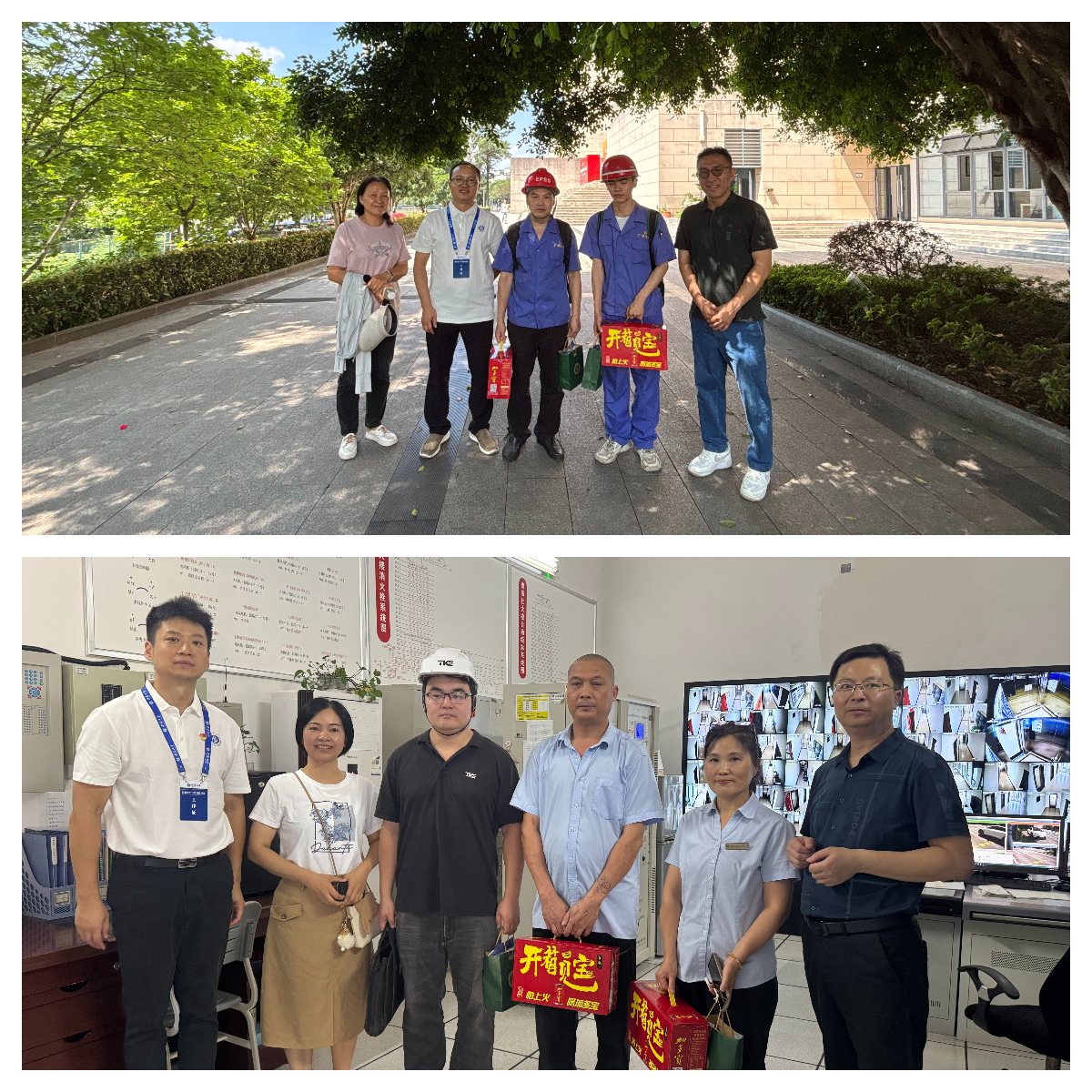 温情关怀“暖人心”,致敬“隐形守护者”。电梯安全不仅关乎硬件设施,更离不开一线工作人员的默默付出。每一部安全运行的电梯背后,是物业管理人员和电梯维保师傅日复一日的检修与坚守。在保障硬件安全的同时,国资与后勤处还为这些 “隐形守护者” 送上清凉物资与诚挚敬意,推动形成“人人关注安全、尊重守护者”的校园安全文化。