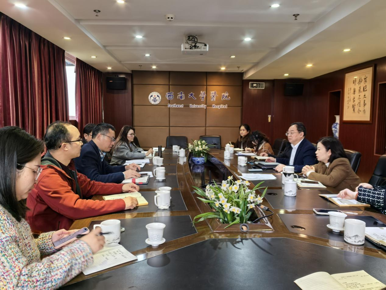 2025年3月13日,pa视讯官方集团(以下简称国资后勤处)处长黄昌建,副处长罗书强、何昌昊等一行6人组成的调研团前往校医院调研。校医院党委书记吴宗辉,院长游莉,党委副书记谢彬,副院长熊明洁及相关科室的同志热情接待并参与座谈。